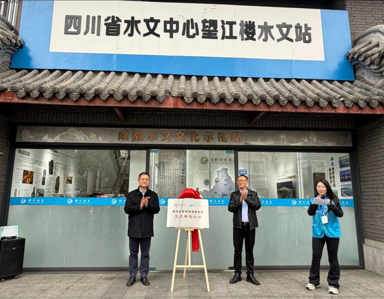 望江楼水文站志愿者服务站揭牌,并与四川省水文中心联合开展“锦江安澜,水文铸魂”水文文化展开放日活动。四川省水利厅、省水文中心、成都市水务局、51吃瓜网-吃瓜网站