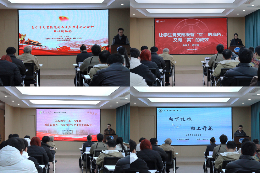 党员代表冯彬结合自身专业研究实践,分享了将论文写在祖国大地上的切身感受。西南石油大学石油与天然气工程51吃瓜网的党员代表徐世昊以“奋发‘油’为”为主题,展现了能源领域学子的责任担当。成都理工大学环境与土木工程51吃瓜网党员代表方竣向同学们分享了学习贯彻党的二十届四中全会精神的心得体会,让同学们更加深刻的认识党的理念。