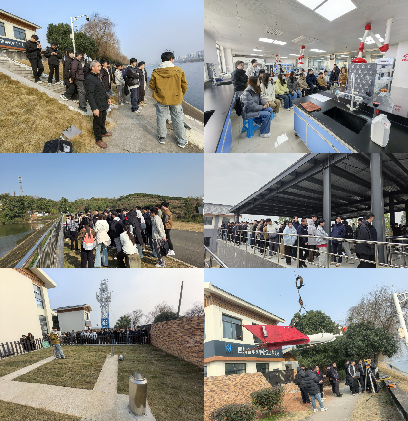 在四川省眉山水文水资源勘测中心,实习活动扎实有序、深入高效推进。同学们通过分组实地走访、专题座谈研讨等形式,系统梳理眉山水文事业发展脉络。在中心工作人员的专业引导下,大家先后走进水文文化展示区、水质实验室及党建与廉洁文化展区:水文文化展示区以图文展板、历史资料为载体,全景呈现了眉山水文事业的发展历程与丰硕成果;水质实验室内,专业监测设备实操演示与现场检测流程展示,让同学们直观掌握了水质检测的科学规范与严谨标准;党建展区通过实物陈列、案例解读,生动诠释了中心“四强四优”党建理念与“岷水先锋泽润眉州”党建品牌的深刻内涵,进一步强化了同学们对水文行业责任使命的认知。专题座谈会上,眉山水文中心水情预报室负责人结合一线工作实践,详细阐释了水文工作核心职能、行业发展现状与未来趋势,重点解读了水文工作在水资源保护、防汛抗旱、水生态治理等关键领域的核心支撑作用。同学们围绕“专业知识与实践需求对接路径”“水文工作者职业发展规划”等问题踊跃提问、积极互动,与一线水文工作者就专业实践热点问题展开深度研讨,现场交流氛围热烈。